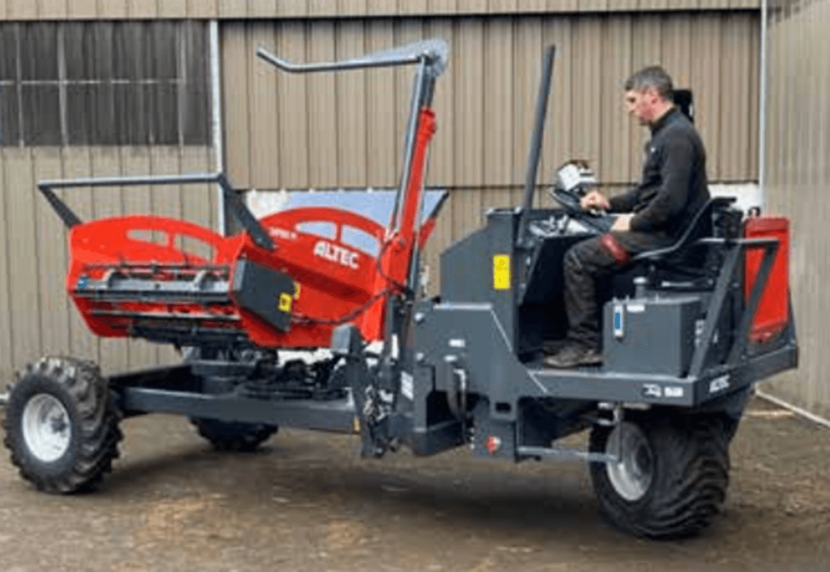 Dérouleuse pailleuse automotrice capable de dérouler une botte ronde et de pailler les bâtiments d’élevage grâce à une largeur hors tout de 1,6 m et une roue motrice et directrice, elle peut circuler dans tous les coins du bâtiment. Avec une rotation de 180° pour distribuer à gauche et à droite ou au centre du couloir. Une caisse inclinable pour contrôler la place de la botte dans la dérouleuse et aussi pour un chargement autonome. Bras de chargement hydraulique. Tapis à chaîne équipé de dents escamotables pour un déroulage performant. Paillage jusqu’à 12m en balayage droite/gauche. Poste de conduite équipé d’un accélérateur à main et d’un potentiomètre pour la vitesse du tapis. 1 Roue motrice / directrice et 2 roues porteuses.