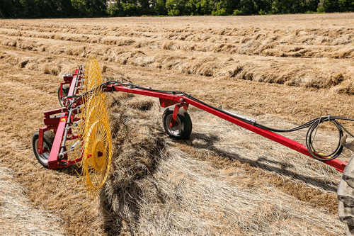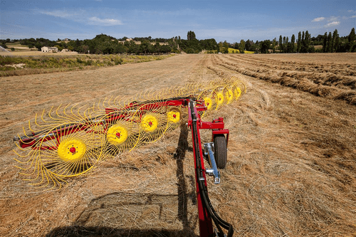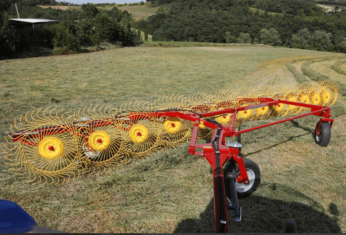 Les andaineurs traînés à 2 rotors sont robustes et efficaces et assurent des andains réguliers, homogènes...