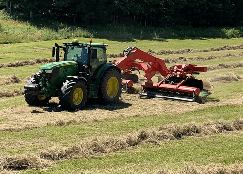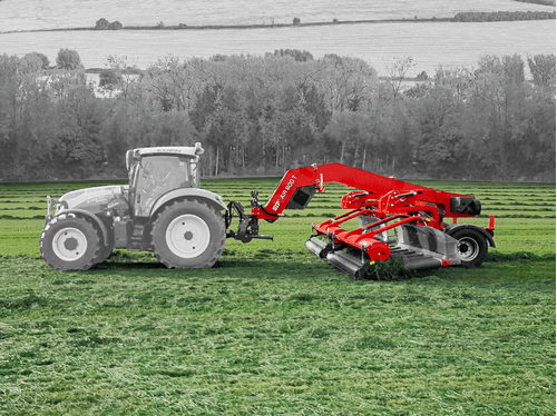 2 unités de ramassage pouvant se rapprocher ou s’écarter afin de faire un andain central (largeur 9 m de travail) ou un andain latéral droit ou gauche (largeur de travail 7 m). Faible diamètre des rotors permettant au fourrage de monter très facilement (conservation maximisée des feuilles). Chaque rotor est segmenté sur sa longueur afin de suivre parfaitement les irrégularités du sol. La hauteur du châssis permet aux unités de ramassage de passer au-dessus des andains lors des manœuvres.