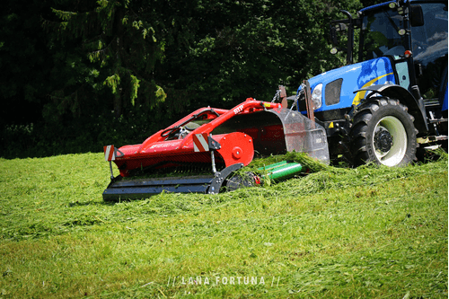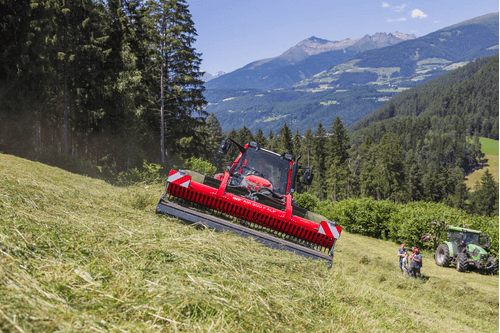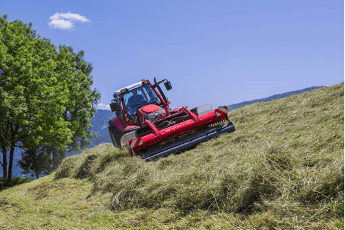 Le centre de gravité proche du tracteur permet une stabilité pendant les travaux en pente.