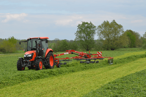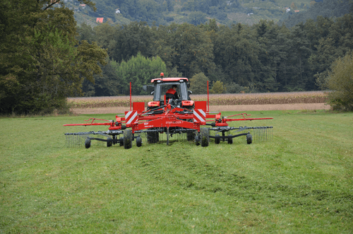 Les andaineurs traînés à 2 rotors sont robustes et efficaces et assurent des andains réguliers, homogènes et propres que ce soit à dépose latérale ou centrale.