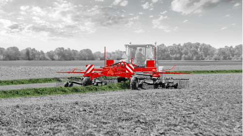 Les andaineurs traînés à 2 rotors sont robustes et efficaces et assurent des andains réguliers, homogènes...