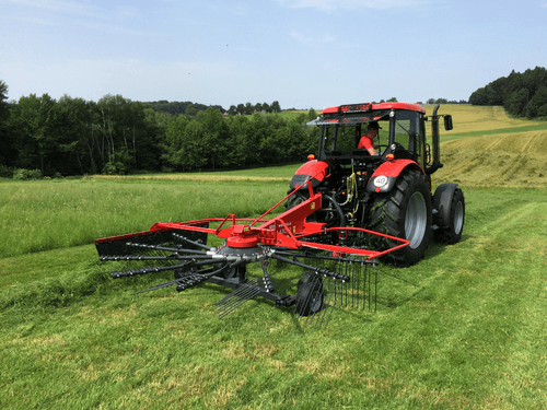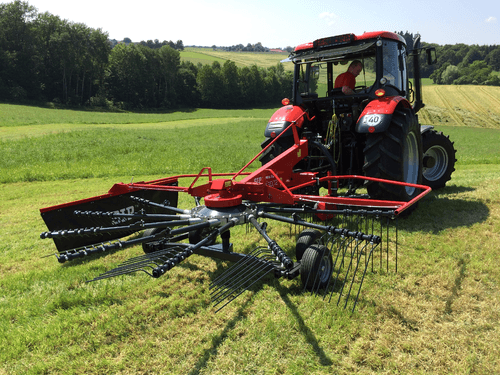 Les andaineurs traînés à 2 rotors sont robustes et efficaces et assurent des andains réguliers, homogènes...