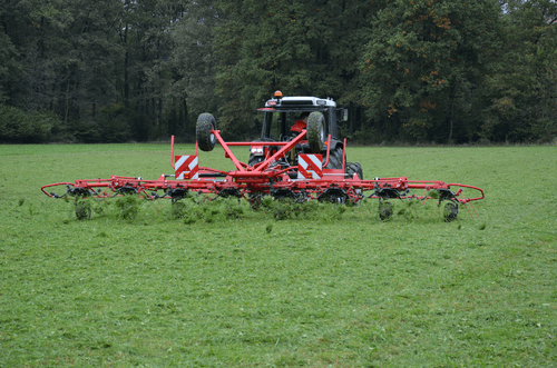 Large gamme de faneuses rotatives de la catégorie Robust équipée de 4, 6 ou 8 rotors. Performantes en assurant une distribution parfaite et uniforme du fourrage même pour des fourrages denses. Elles permettent un fanage très précis que ce soit sur les terrains pentus ou en bordure de champs notamment avec le système d’orientation hydraulique HS dont toute cette gamme est équipée de série. Pliage hydraulique des rotors pour une largeur de transport plus petite. Fourrage ramassé proprement grâce à des rotors plus petits et différentes longueurs de tiges de dents. Attelage pivotant soutenu par des stabilisateurs pour les rotors lorsque le fourrage est dense. Bras porte dents à ressorts en tubes ronds de qualité supérieure
