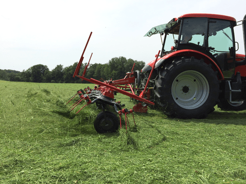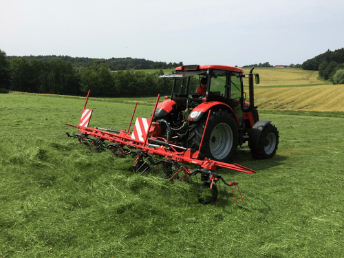 Gamme de faneuses rotatives professionnelles semi-portées de 8 à 14 rotors robustes (8.80m à 14.80m de...