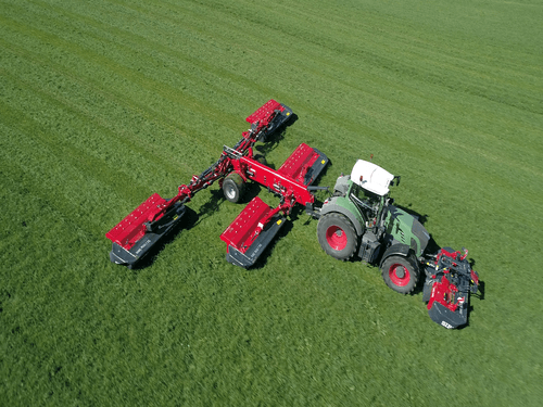 14,50 m, équipé de 5 faucheuses. Système de sécurité anti-collision hydraulique. Réglage hydraulique de la hauteur de fauche. Suspension hydropneumatique. Système de changement rapide des couteaux. Système de sécurité des disques.