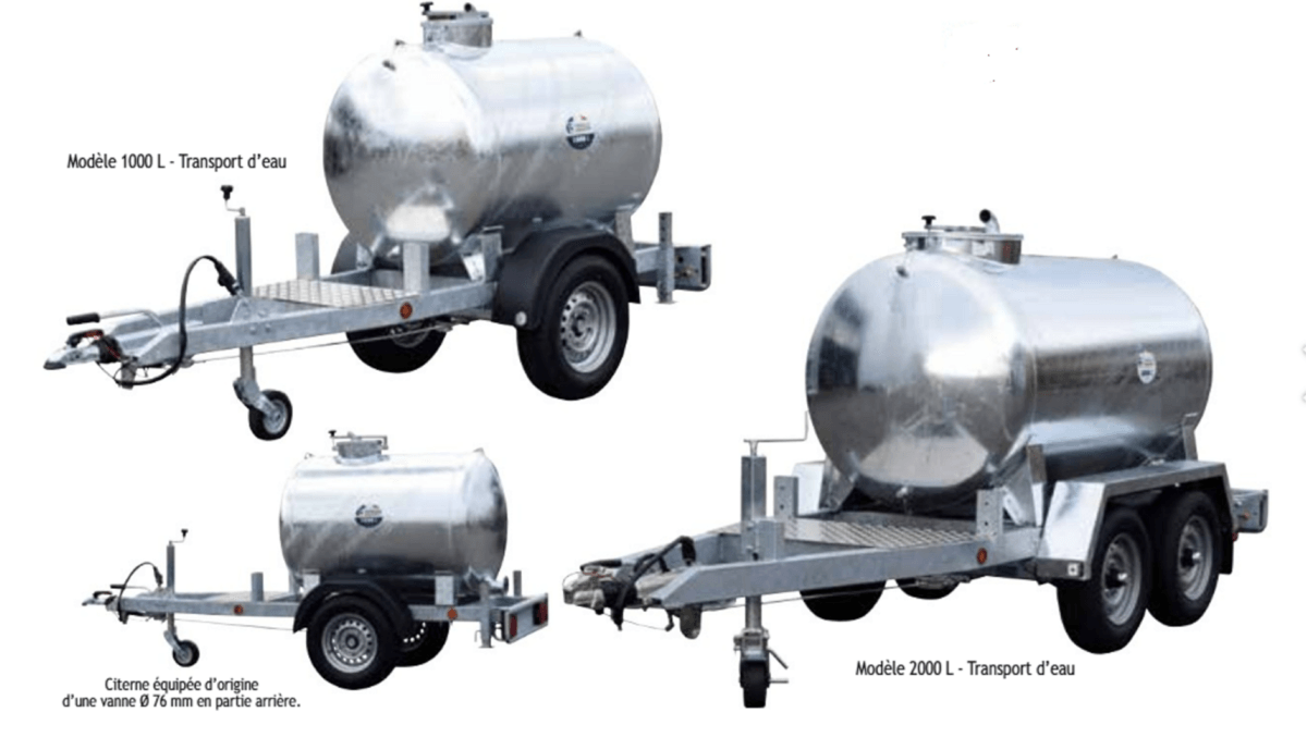 Citerne à eau 2 000 L – 2 essieux PTAC 3 000 et 3 500 Kg