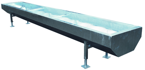 Une gamme d’auges standards peintes ou galva (en acier galvanisé à chaud). Pour bovins et pour une alimentation en fourrage et ensilage. Bac d’auge de grande profondeur. 2 traverses de renfort à l’intérieur. 4 pieds soudés et 6 pieds pour les auges 6 m. Les pieds sont reliés par des traverses de renfort. 1 rebord anti gaspillage. Vidange par bouchon à vis diamètre 45 mm. Largeurs disponibles 0.60 et 0.80 m. Un bac alimentaire en résine polyéthylène pour ces différentes types d'auges, peut être ajouté pour les auges de 0.80 m de large afin d’optimiser leur longévité. Pour prolonger le revêtement galva l’application d’un enduit bitumeux est conseillée périodiquement. Une gamme d’auges galva de fabrication méca- soudée et galvanisés à chaud pour petits animaux est proposée. Elles sont polyvalentes et conviennent à tous types d’animaux. Modèles : Auges standard peintes ou galva largeur 0.60 m : Long 3 m – Long 4 m – Long 5 m – Long 6 m Auges standard peintes ou galva largeur 0.80 m : Long 3 m – Long 4 m – Long 5 m – Long 6 m Auge galva pour petits animaux largeur 0.33 m : Long 2.45 m – Long 3 m – Long 4 m – Long 5 m