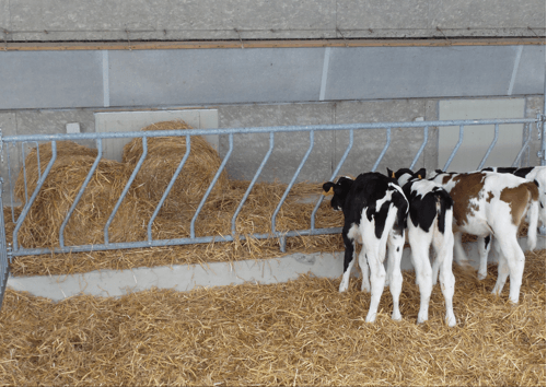 Barrière pour veaux jusqu'à 6 mois, limitant le gaspillage à l'auge. Panneau disponible de 2,12 m à 5,02 m.