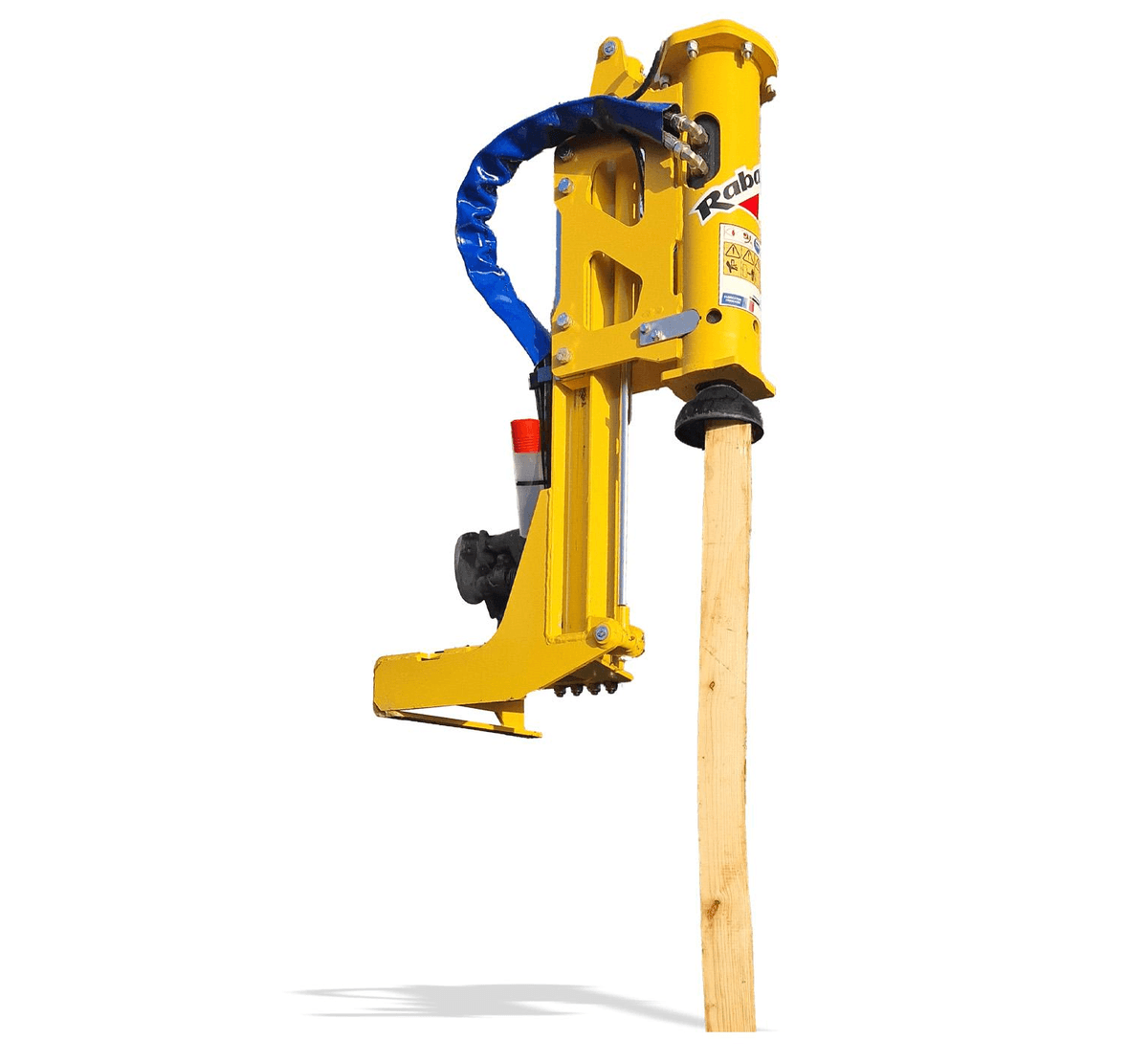 Adaptable sur mini-pelle, télescopique, chargeur frontal, chargeur compact. Nouveau marteau avec une grande fréquence de frappe. Marteau monté sur coussins amortisseurs pour supprimer les vibrations et réduire le bruit. Vérin de levée/descente pour une traction constante sur le piquet permettant son maintien et une grande force d’appui. Marteau à percussion monté sur un mât avec glissières antiusure en ertalon. Cloche de frappe robuste, forgée, usinée et traitée, Ø 150mm.