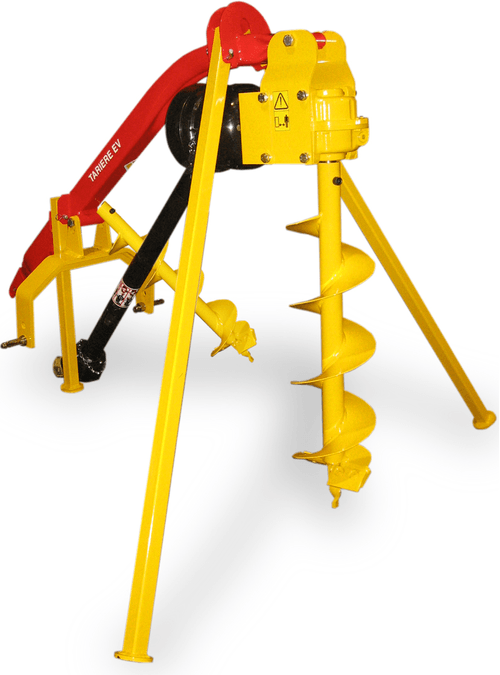 1-Tarières mécanique sur microtracteur : Cette tarière adaptable sur un microtracteur d’une puissance maximale de 25 cv idéal pour une utilisation en espace vert sur attelage 3 points n° 1. Entraînement par prise de force 540 Tr/min. Boîtier renvoi d’angle : rapport 1/5,22. Poutre châssis tubulaire axiale. Sécurité du boîtier : limiteur à friction. Deux vrilles avec lames et pointes interchangeables de 150 mm et 220 mm de diamètre d’une longueur de 0.85 m 2 béquilles de stationnement. 2-Tarières mécanique sur tracteur 2 modèles pour l’agricole et 2 modèles pour viti : Pour une utilisation agricole sur tous les terrains (clôture, élevage…), AXIALE II et SENIOR II déportable s’adaptent à des tracteurs à partir de 50 cv. 3-Pour une utilisation viti, les tarières MINI-JUNIOR et JUNIOR déportables, s’adaptent à des tracteurs de 15 à 60 cv. Elles s’utilisent pour la création et la rénovation des vignes. Faciles d’utilisation avec le changement rapide des vrilles grâce à la fixation hexagonale sans boulons, ces 4 modèles pour tracteur disposent d’un large choix de vrilles de 100 à 600 mm disponibles. En option, possibilité d’un boitier inverseur de rotation. Entrainement PDF 540 Tr/min, sécurité du boitier : limiteur à fiction 2 béquilles de stationnement. Modèles : Tarière MICROTRACTEUR - AXIALE II - SENIOR II – MINI JUNIOR - JUNIOR