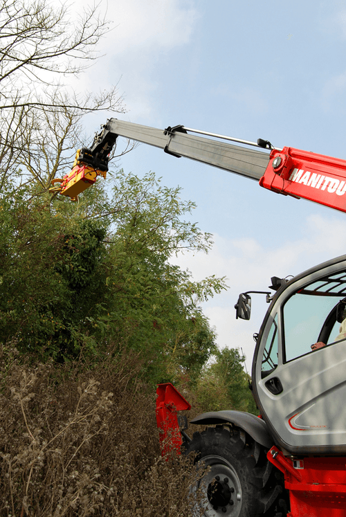 Sur télescopique, diamètre de coupe de 300 mm. Pinces inférieures qui permettent de maintenir le bois après la coupe et au transport. Puissance de coupe de 20 tonnes. Inclinaison hydraulique : -18°/ +85° selon la position du vérin.
