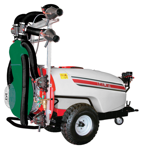 Cuve 1 000 L, turbine 8 sorties : 4 mains et 4 canons, commandes électriques, cuves lave main et rinçage. Passage dans les roues du tracteur grâce à l'attelage articulé et le cardan grand angle.