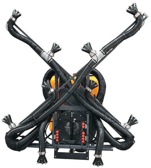 La gamme de pulvérisateurs pneumatique se compose de différents types de châssis tels que châssis arrière, châssis semi porté, châssis porté. Capacité de 400 à 2000 L.