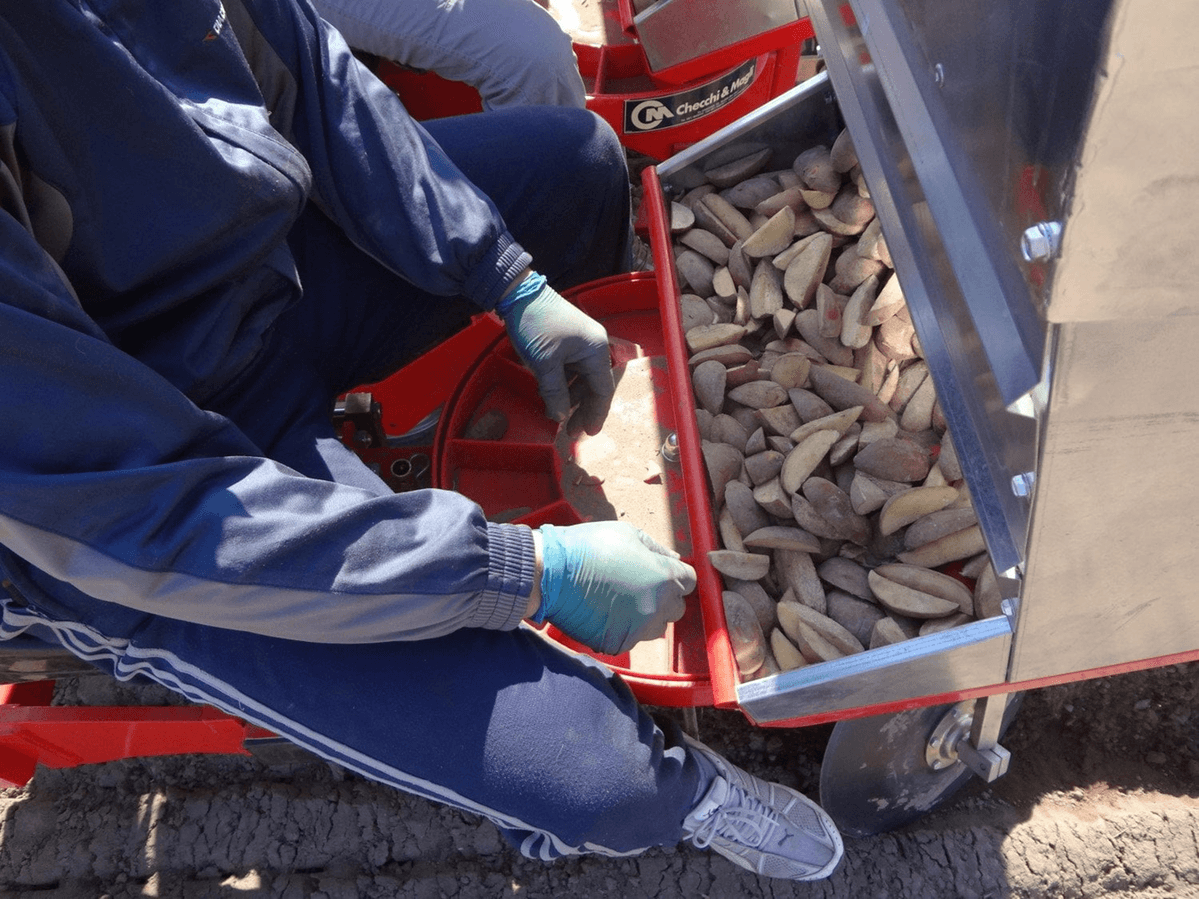 Une planteuse de pommes de terre et autres tubercules à roues motrices qui existe en 1, 2, 3 ou 4 rangs. Attelage 3 points pour tracteurs ou mini tracteur. Avec un système de distribution horizontal à alvéoles. La distance d’ensemencement va de 14 à 28 cm. La trémie a une capacité de 80 kg. Roues d’appui et disques de couverture réglables en profondeur, largeur et inclinaison au choix, version à socs pour terrains très légers (sableux). Choix d’accessoires en option pour chaque utilisation Modèle : F300L