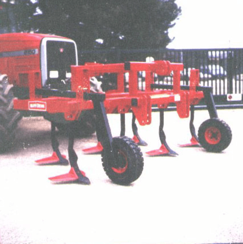 Gamme de déchaumeurs poussés OPTILINE avec châssis tripoutre carré de 100 x 100 et 3 rangées de dents soit sécurité non-stop ressort ou sécurité boulon de cisaillement ou de type queue de cochon carré 35 mm.