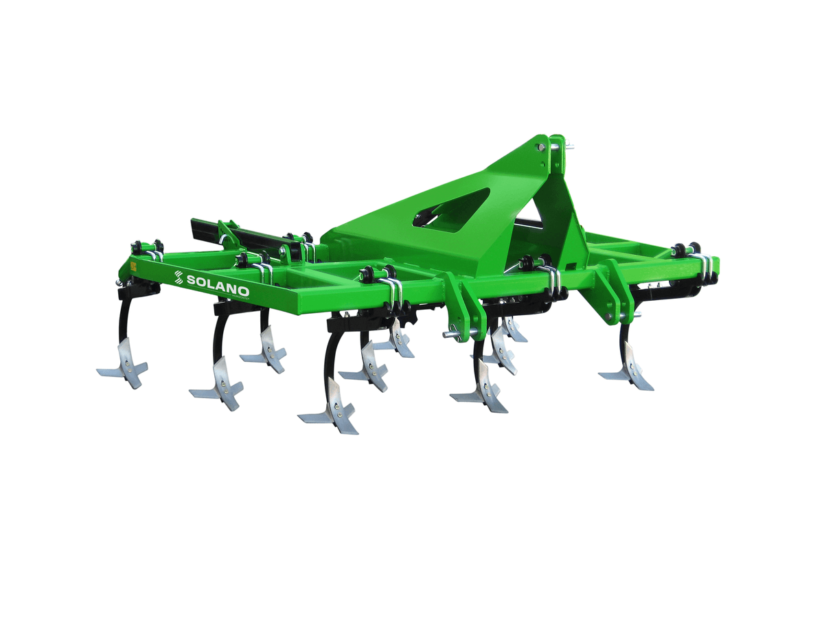 Conçu avec un châssis en tube structurel 100 x 100 x 8 mm, sa profondeur de travail peut atteindre jusqu'à 40 cm avec un dégagement verticale sous châssis de 80 à 85 cm selon modèle et un dégagement entre les rangées de 75 cm. L'attelage est de catégorie III, le bras monté avec sécurité non-stop mécanique à ressort, avec bagues en téflon et double ressorts (sauf option sécurité boulon). Tous les modèles sont conçus de base sans disques ni rouleau, lesquels sont à choisir en options selon vos besoins.