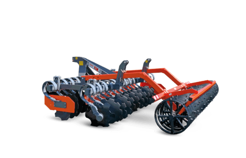 Déchaumeur à disques TAL-C qui fonctionne très bien sur sol pierreux. Avec ces disques crénelés de 560 mm de diamètre en acier fixés au palier sans entretien. Ressort amortisseur de taille 100x13 mm.