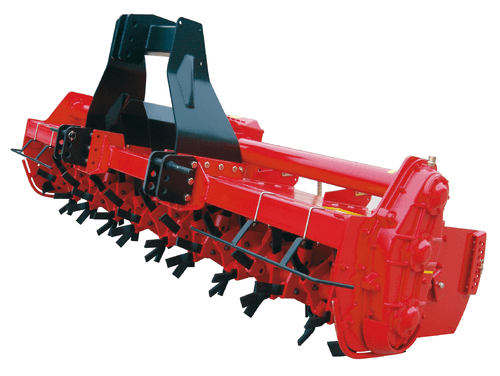 Fraise rotative à lames vrillées et prise de force à 540 tr/min ou 1000 tr/min.