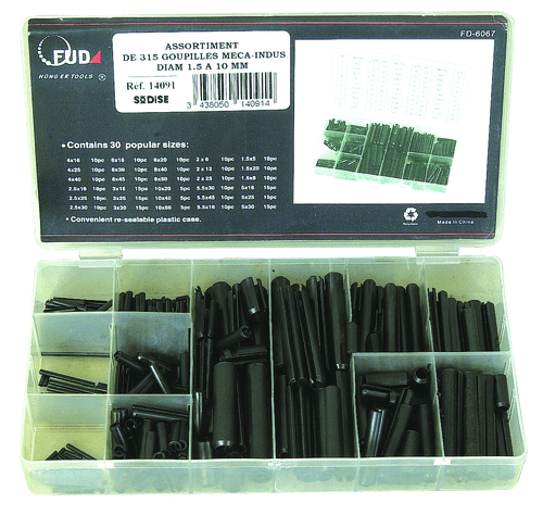 Coffret plastique de 315 goupilles Mécanindus assorties.