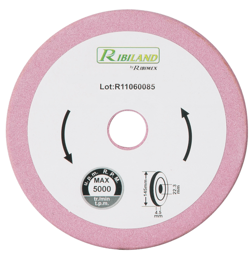 Diamètre extérieur 145 mm. Epaisseur 3,2 mm. Diamètre intérieur 22,3 mm. Pour affûteuse de chaîne 13012.