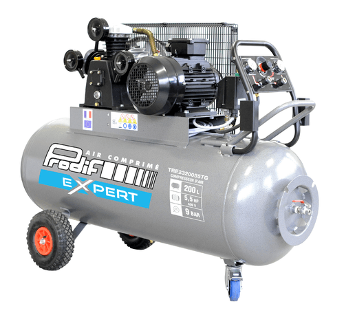 Sans huile. 6 L. Débit restitué : 61 L/min, 8 Bar. Moteur bicylindre S1, 0,75 CV. 220 V.