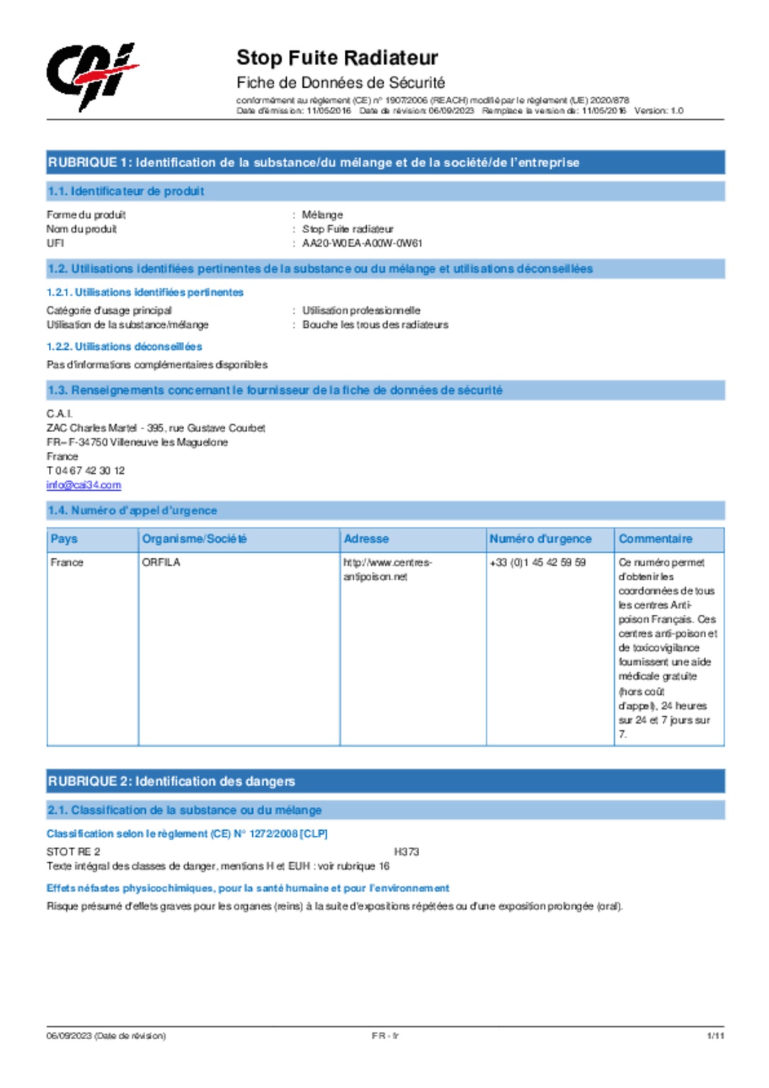 Colmate et prévient sans démontage les micros fuites du système de refroidissement.