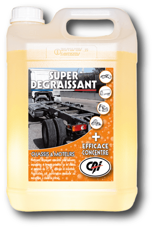 Pour le nettoyage et dégraissage de fortes salissures en machines à haute pression à chaud ou à froid et nettoyage et dégraissage de moteurs, chassis, engins et