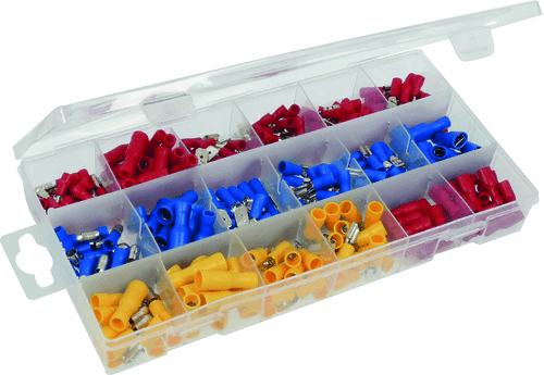 140 cosses pour fil électrique de 0,25 à 1 mm² : 35 rondes, 105 plates.