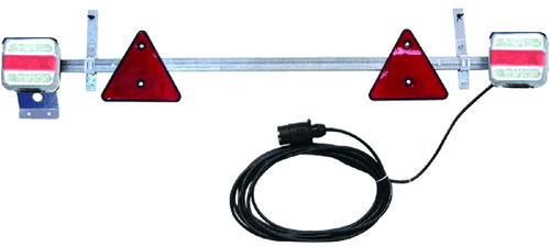 Triangle réfléchissant. 12 V. 2,5 m entre les 2 feux. Câble : 7,5 m. Aimant au dos.