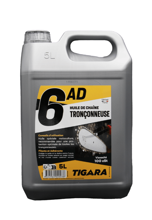 Lubrifiant pour chaîne de tronçonneuse et d'abatteuse. 6/8 AD. Usage intensif. Filante et anti-usure. Grade ISO 100. Bidon 5 L. Existe en 10/12 AD 5L.