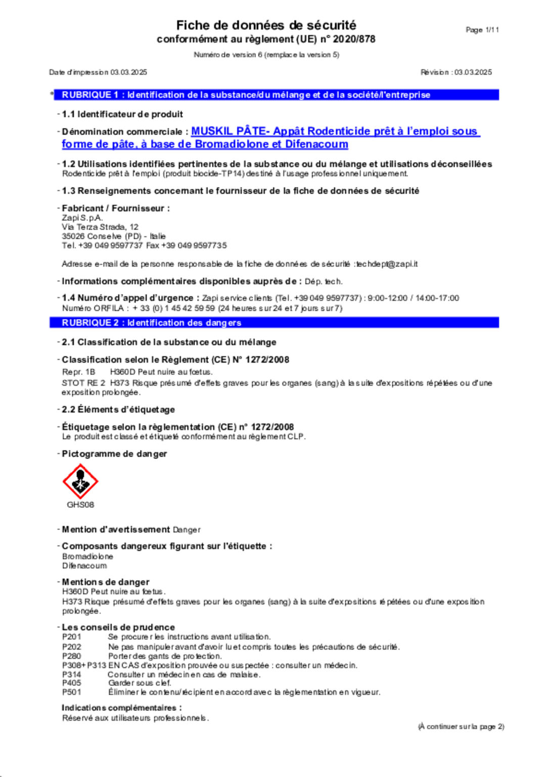 Raticide. TP 14-Rodenticide prêt à l'emploi. Composition : Matière active, Brodifacoum à 27 ppm (meilleure...