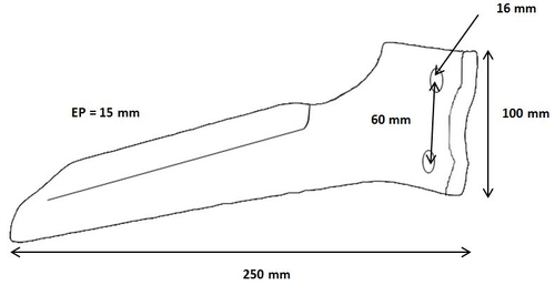 Dent de herse boulonnée 250 x 15 gauche origine