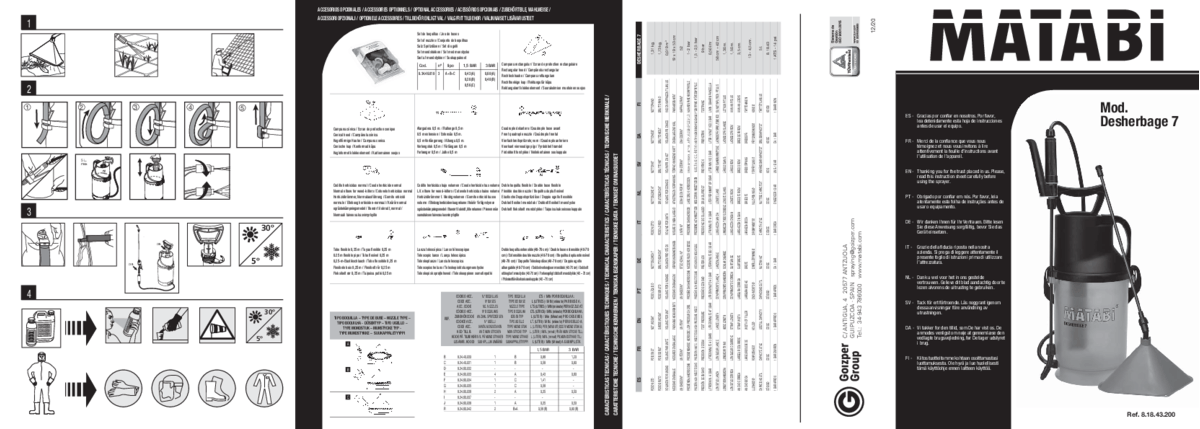 À pression préalable. Réservoir en polypropylène translucide. Lance en fibre de verre très résistante, extensible de 42 cm pour atteindre les zones difficiles d'accès, 1 écran conique pour une application précise et localisée du traitement. Poignée de transport et sangle de transport large, résistante et ajustable.